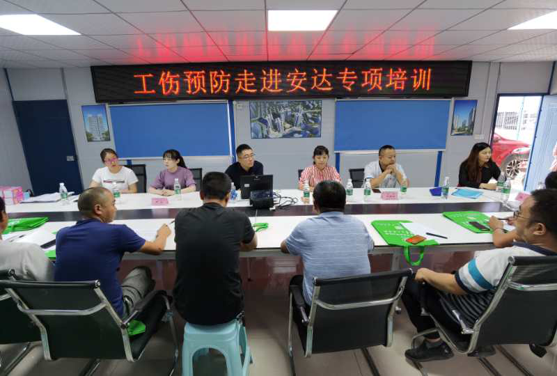 为提高我市建筑企业安全生产管理工作,9月19日,由绵阳市人力资源和社会保障局、绵阳市社会保险事务中心主办,绵阳市工伤预防培训机构--绵阳市第三人民医院承办的工伤预防培训走进绵阳安达建设有限公司。来自企业的安全管理人员、班组长、一线员工50余人参加了培训。