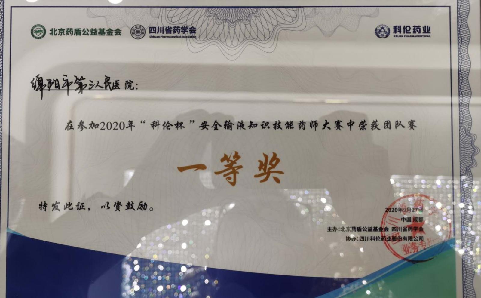 我院获2020“科伦杯”安全输液知识技能药师大赛 四川赛区省决赛团队一等奖