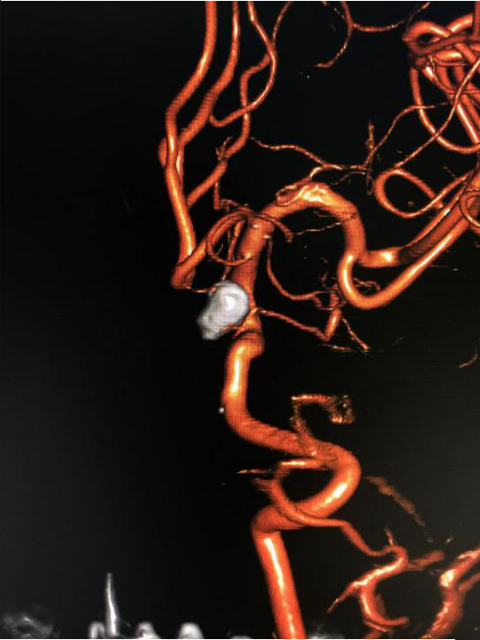 退休多年的赵师傅近半年出现了头痛、头晕等症状,但并未引起特殊重视。除高血压外,赵师傅没其他毛病,况且他一直规律口服降压药,血压控制良好。直至近日,赵师傅头痛、头晕发作越发频繁,这才在家人的陪同下到绵阳市第三人民医院神经外科就诊。经CT血管成像检查,发现赵师傅脑内暗藏一个“不定时炸弹”----颅内动脉瘤,而且该动脉瘤是颅内主干血管上的宽颈动脉瘤,临床上将之归类为复杂动脉瘤类型。