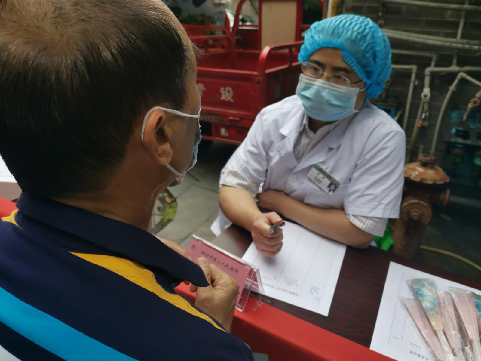 6月9日上午,我院三医党员送健康六进活动走进游仙区治平路社区,我院脑功能治疗中心罗伟、眼科刘堂兵、全科医学科李峰等专家为广大社区群众提供免费义诊服务,还现场为居民免费测量血压,事业发展部汤倚马、钟敏为居民发放宣传口袋、宣传手册、签约家庭医生等方式向群众普及医学常识和健康知识,让群众能够更加了解日常保健、慢性病防治、防控的相关知识,建立健康的生活方式,养成健康生活习惯。现场签约家庭医生50余户。
